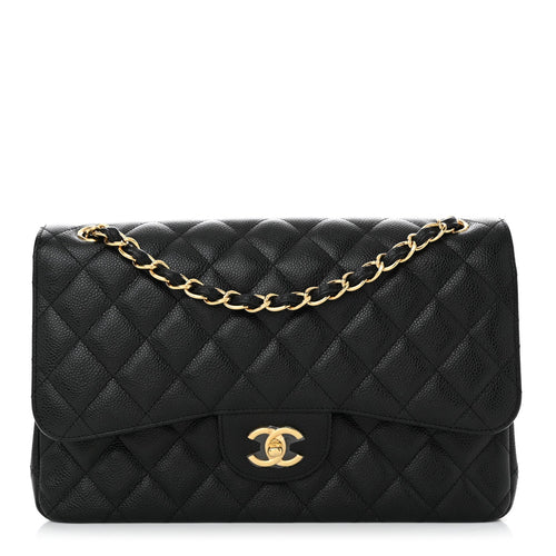 PRE-LOVED CHANEL Classic Caviar Medium Double Flap with Gold Hardware